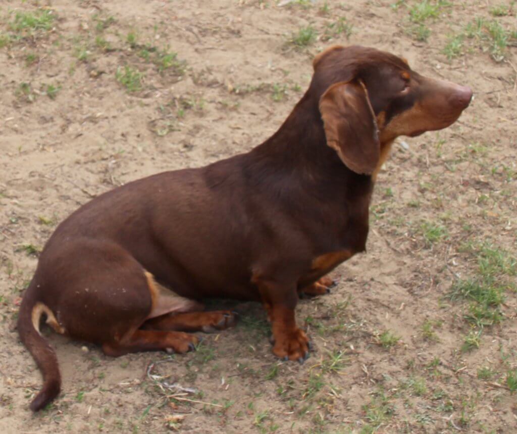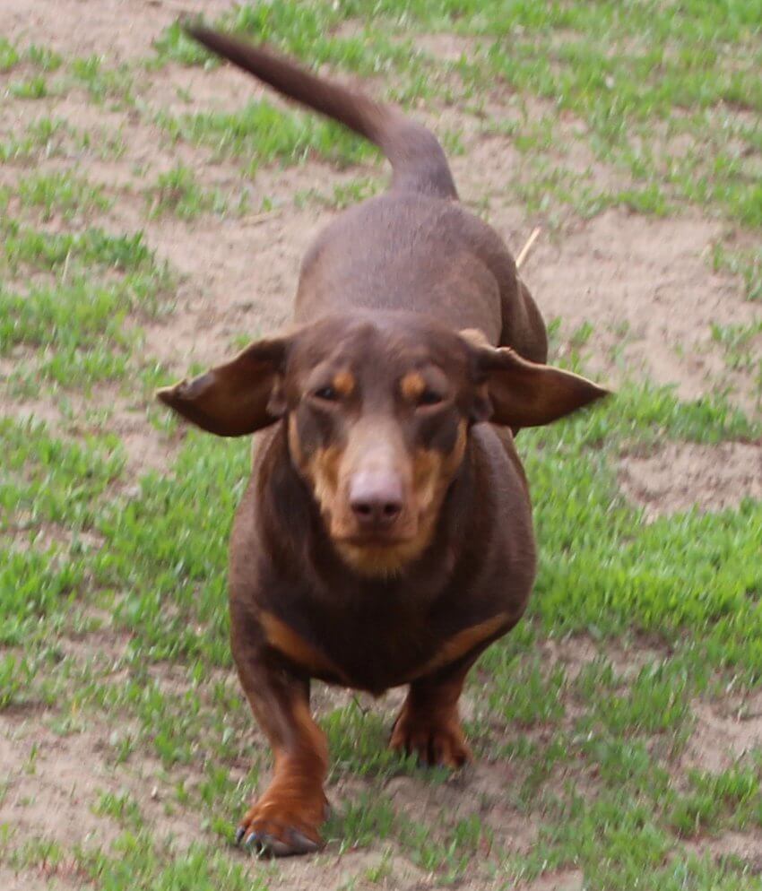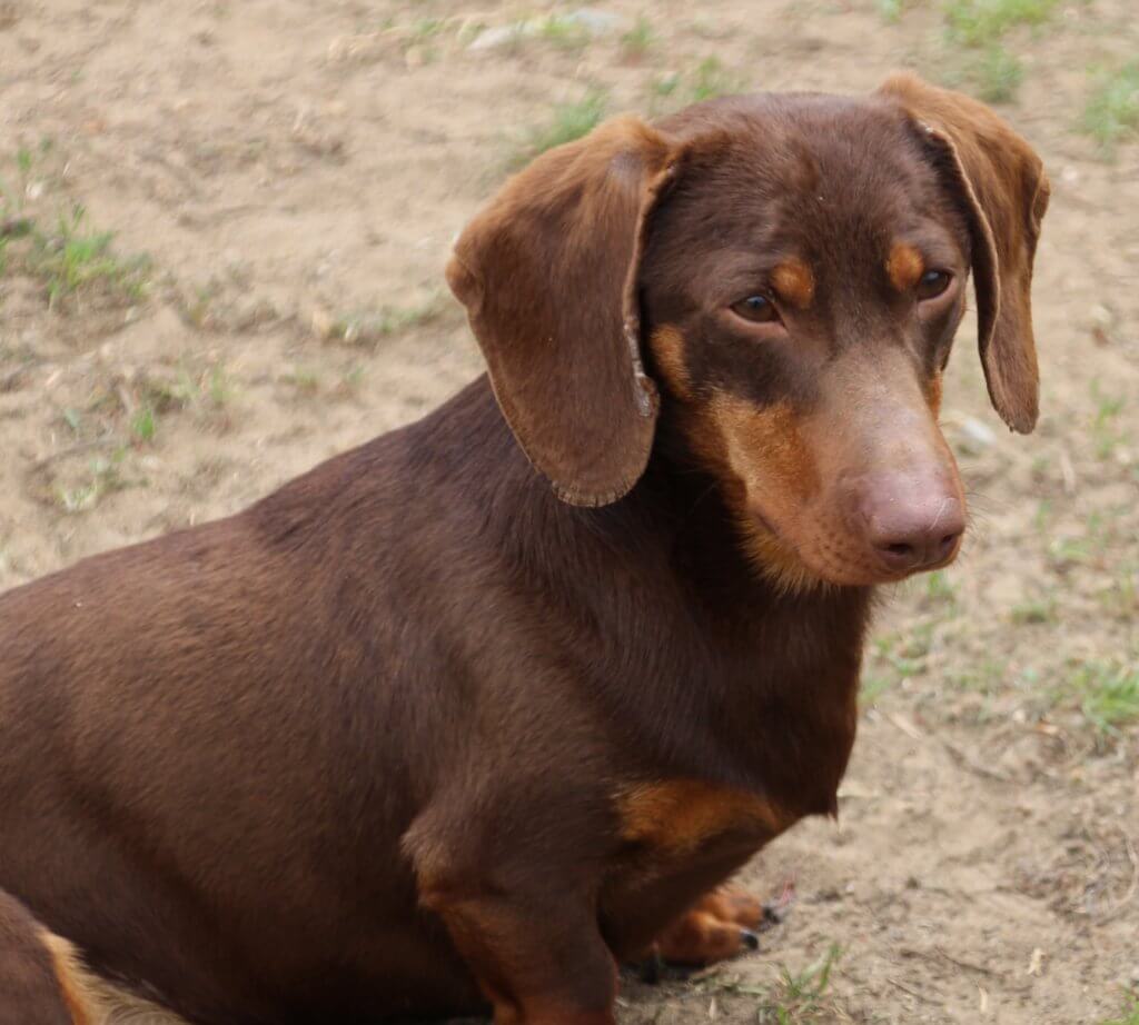 Pici testű, csokibarna színű, 10 hónapos, tacskó kan érkezett Jászfényszaruról.