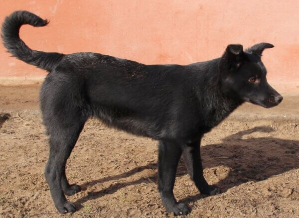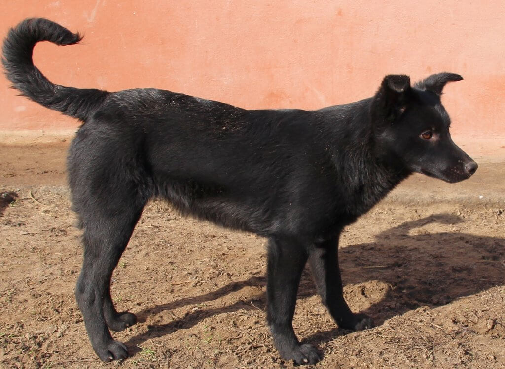 Hallatlanul elegáns, hosszú lábú, arányos testű pici keverék szuka kutya Perla, aki január első napjaiban érkezett. A hatvani Teniszpályán bújt el a petárdák elől, onnan értesítettek bennünket.